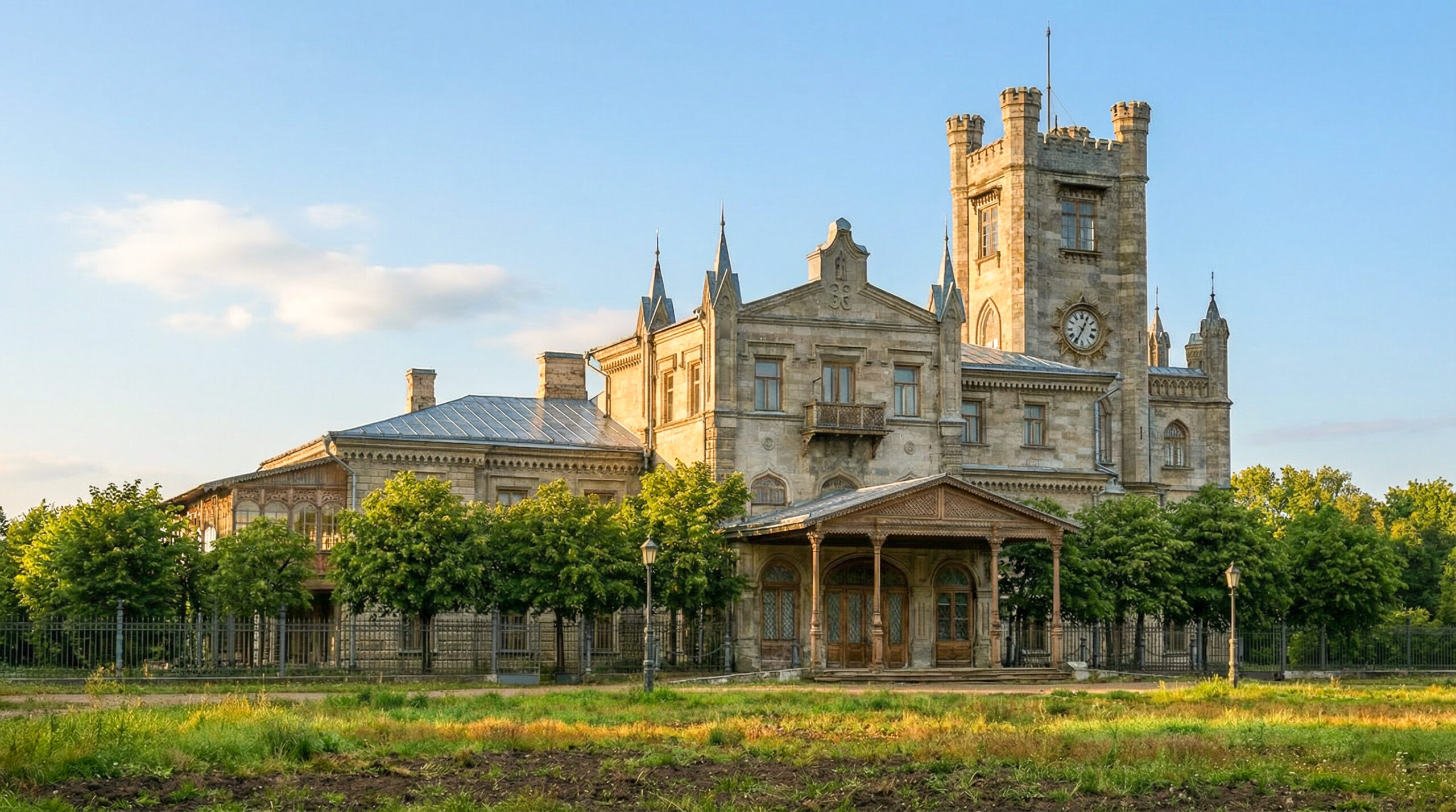 Лентвариский дворец до реконструкции Тышкевичами мог выглядеть примерно так — сдержанный, ещё не отмеченный той визией, которая позже превратила его в один из самых выразительных дворянских усадеб Литвы. Здесь ещё нет признаков последующей роскоши, нет романтизированного неоготического стиля — только структура, время и ожидание. Такие места накапливают историю не во фасадах, а в тишине: в стенах, в земле, в пространстве между постройками.